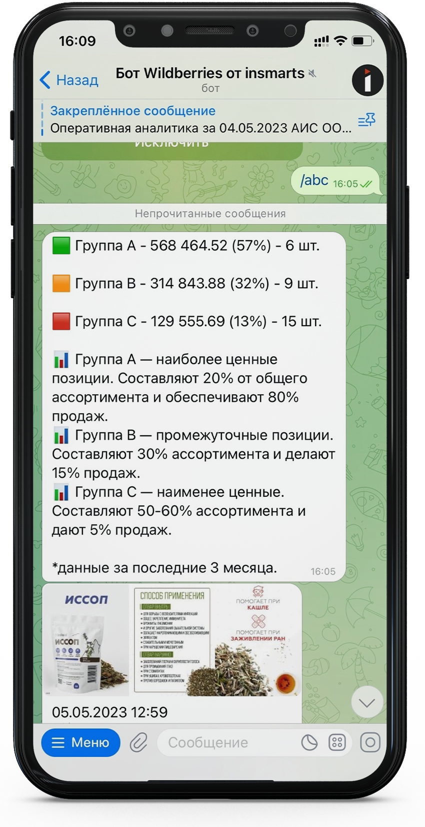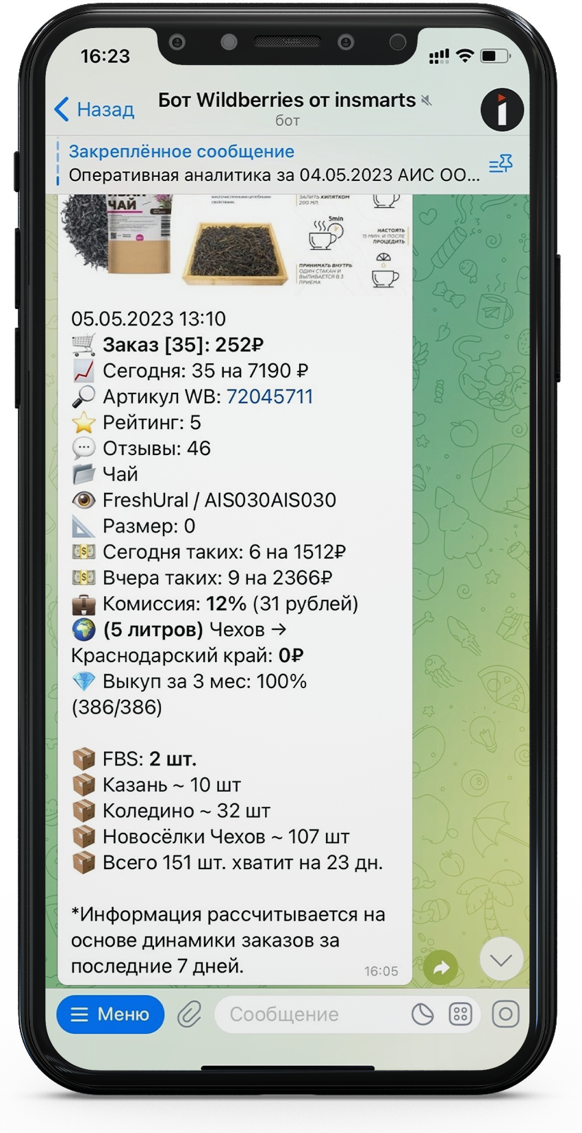 посмотрите видео о работе с ботом и сервисом по аналитике заказов с WB
