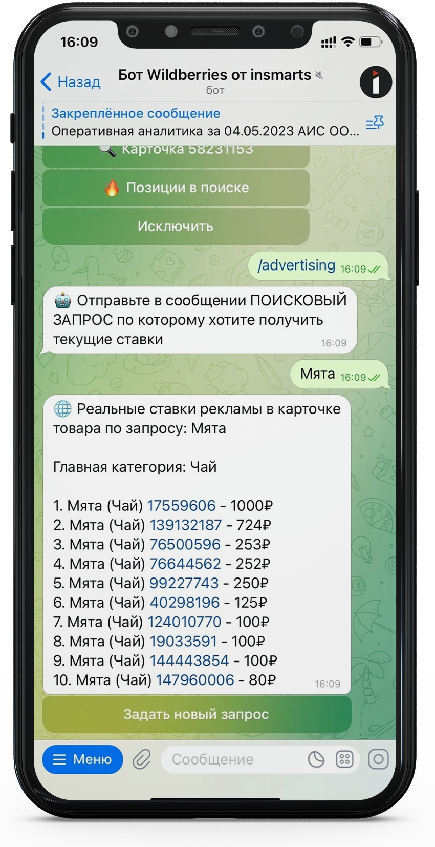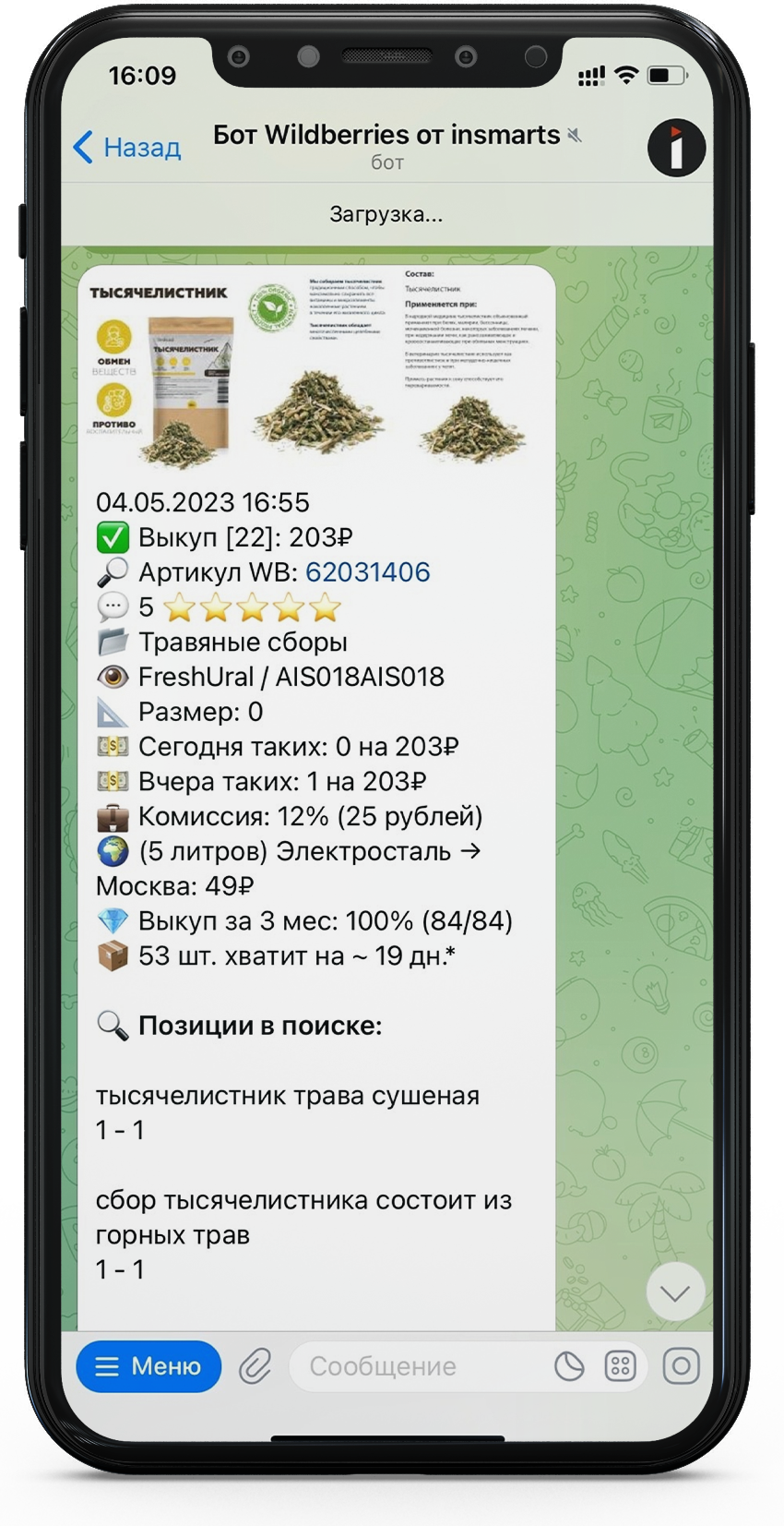 Доступ к боту сбесплатным мониторингомпозиций ваших товаров в маркетплейсе