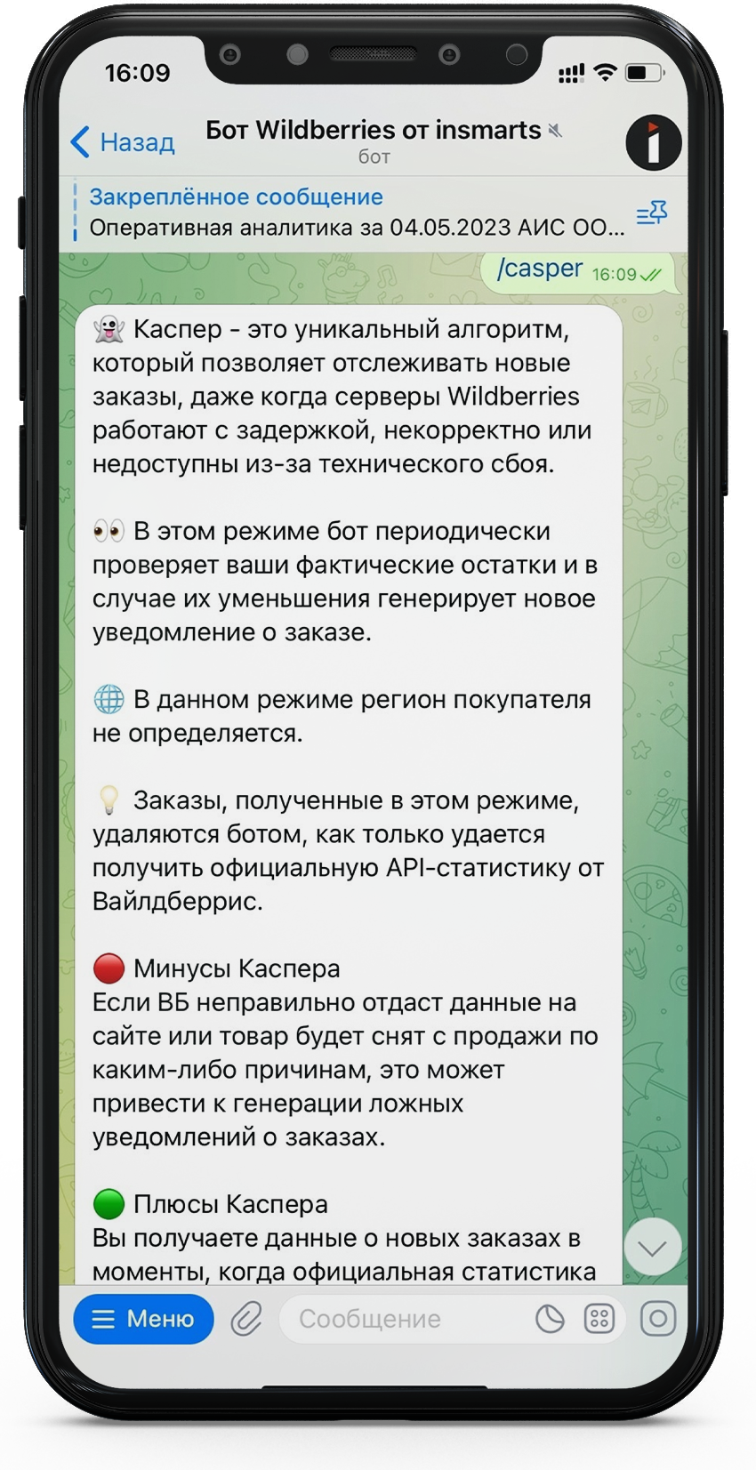 Режим Каспер Задача каспера максимально быстро оповестить Вас о поступлении заказа. Причина, что данные API WB выгружаются раз в 30 минут, но по факту же задержка от 1 часа и более.